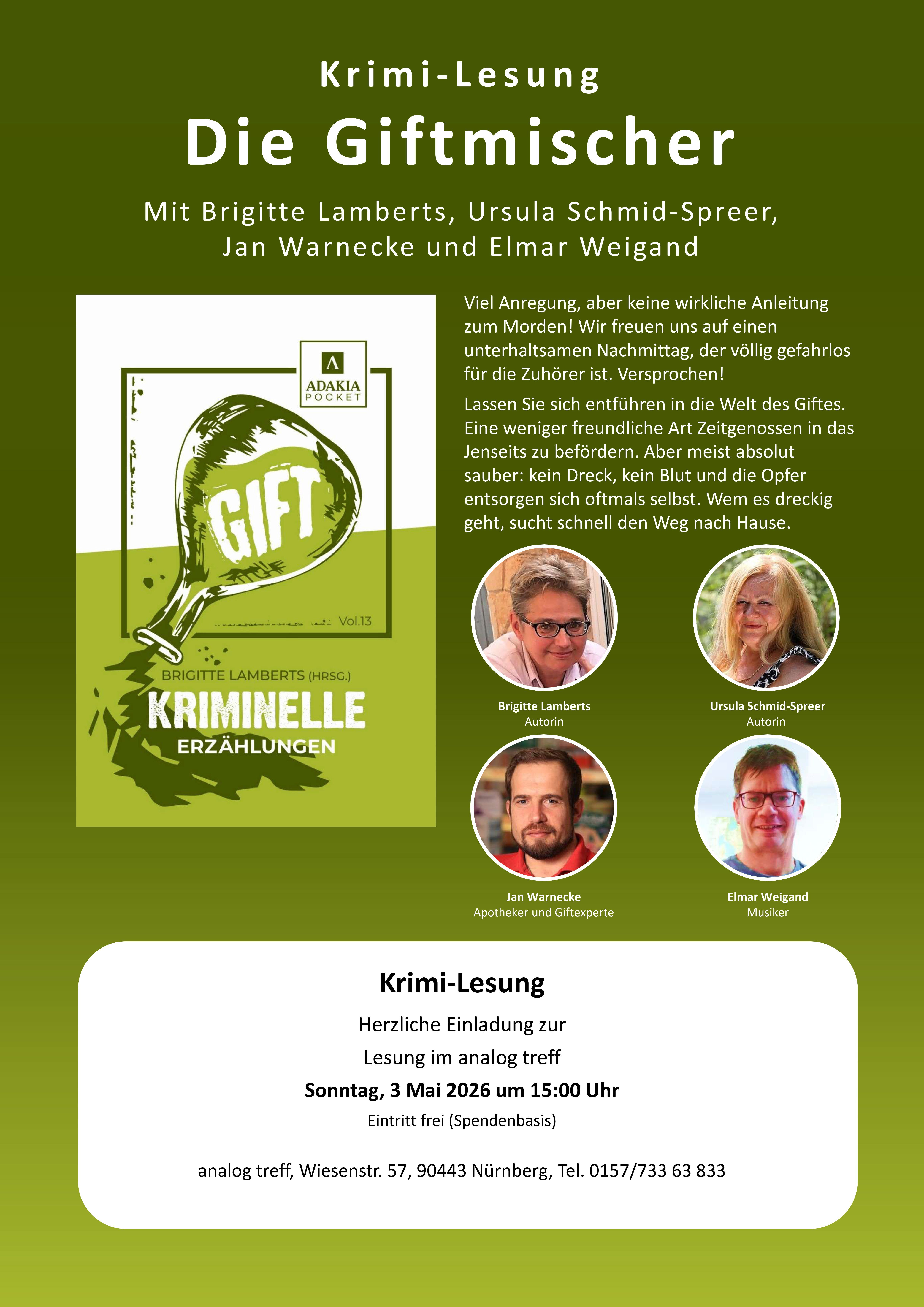 Wir freuen uns auf einen unterhaltsamen Nachmittag, der völlig gefahrlos für die Zuhörer ist. Versprochen!